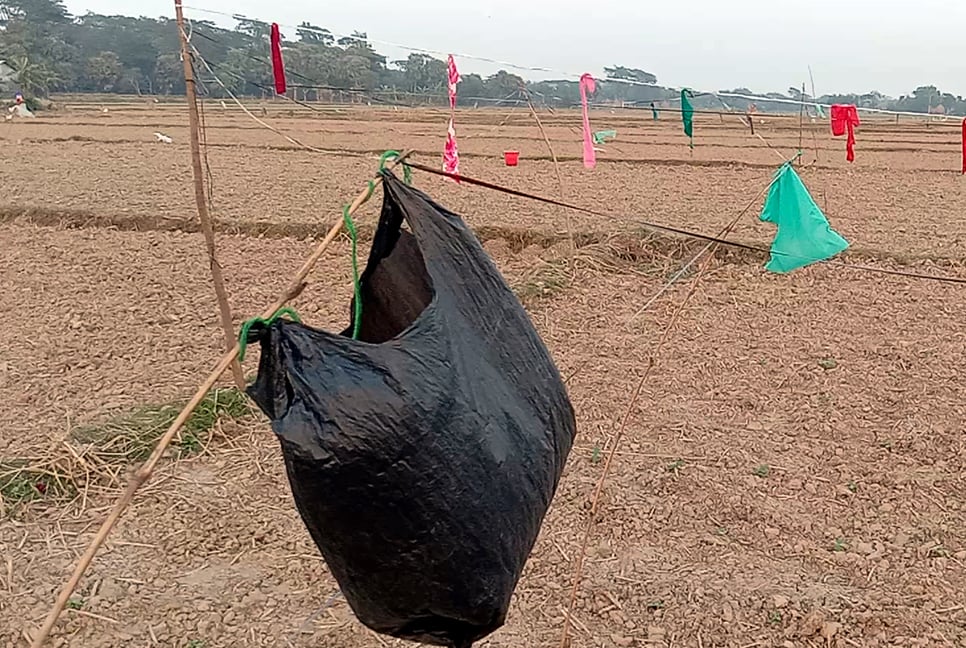 অভিনব পদ্ধতিতে পাখি তাড়াচ্ছে কৃষক